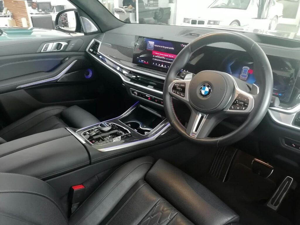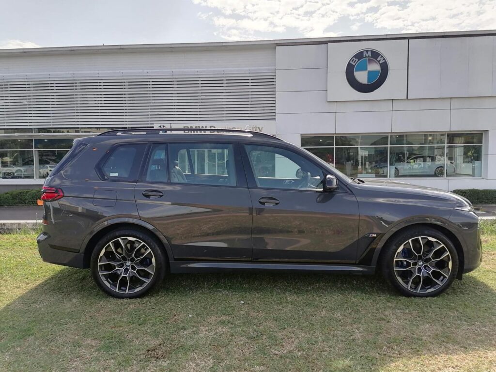 Experience luxury and performance with the 2025 BMW X7 xDrive M60I M Performance Pro. This sophisticated SUV, finished in elegant grey, combines BMW's renowned engineering with a spacious and plush interior, designed to enhance every journey. Powered by a robust 4.4-liter petrol engine, this model delivers an exhilarating drive, ensuring a perfect blend of power and efficiency that's ideal for both urban commutes and long-distance travels. Dravit Grey Metallic BMW Individual extended leather trim 'Merino' Black 22" M Alloy wheels Double-spoke style 913M Bicolour with mixed tyres. M Sport brakes M Sport package Pro Trailer tow hitch, fully electrically operated BMW Crystal headlights Iconic Glow Panorama glass roof Sky Lounge Luggage compartment net Glass application 'CraftedClarity' for interior elements M seat belts Interior trim finishers Carbon Fibre Driving Assist Professional Connected Package Professional Bowers & Wilkins Diamond surround sound system Personal eSIM preparation BMW Individual high-gloss Shadow Line with extended contents Telematics and Online Service provider control Vehicle access control