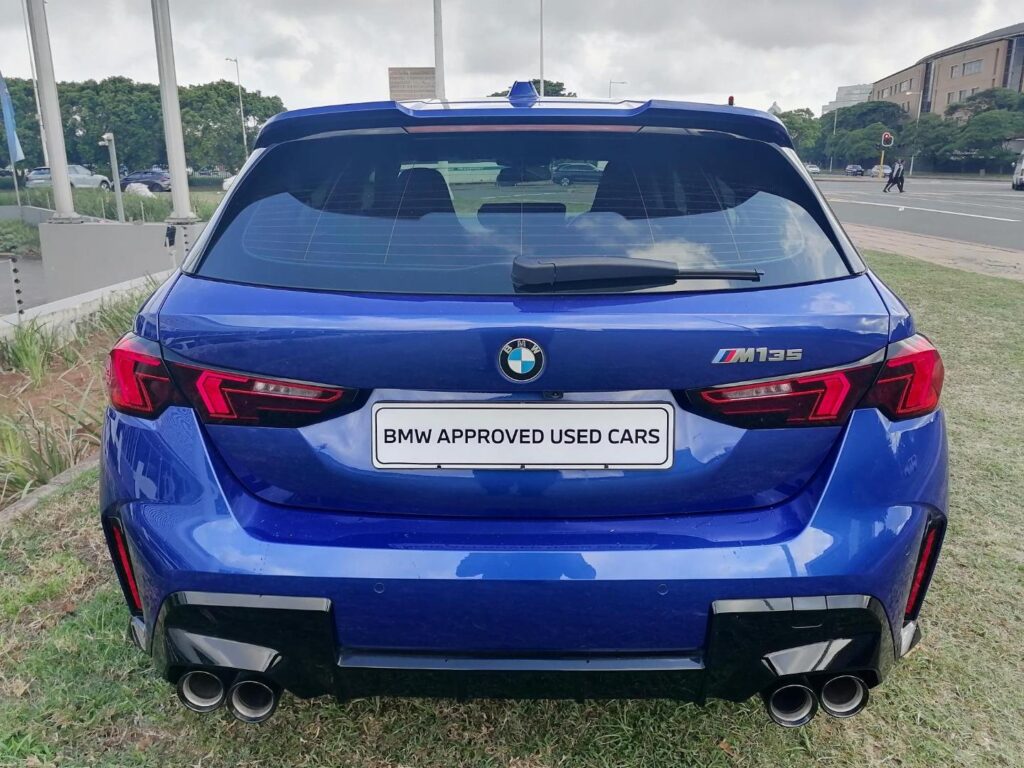 Experience the thrill of precision engineering with the 2025 BMW 1 Series M135 xDRIVE A/T. This dynamic hatchback features a robust 2.0-liter turbocharged i4 engine, delivering an impressive 233 kW of power and 400 Nm of torque. The M135's all-wheel-drive system ensures superior handling and stability, making it perfect for both city driving and weekend getaways. Accelerating from 0 to 100 km/h in just 4.9 seconds, this vehicle offers a blend of performance and efficiency, with an average fuel consumption of 7.8 liters per 100 km and a range of up to 628 km. Portimao Blue Metallic M Alcantara-Veganza combination Black- contrast stitching Blue 19" M Light alloy wheels Y spoke style 976 M Bicolour with dynamic tyres Automatic tailgate operation Comfort Access Panorama glass sliding/tilting sun roof, electrically operated Interior and Exterior mirror with automatic anti-dazzle function Automatic anti-dazzle interior mirror U'Illuminated Aluminium graphite interiordecor Seat adjustment, electric with memory for driver's seat Adaptive LED headlights High Beam Assist Parking Assist Plus Head-up display (not with grey shade band windscreen) Storage for wireless charging BMW Live Cockpit Professional M Sport Seats