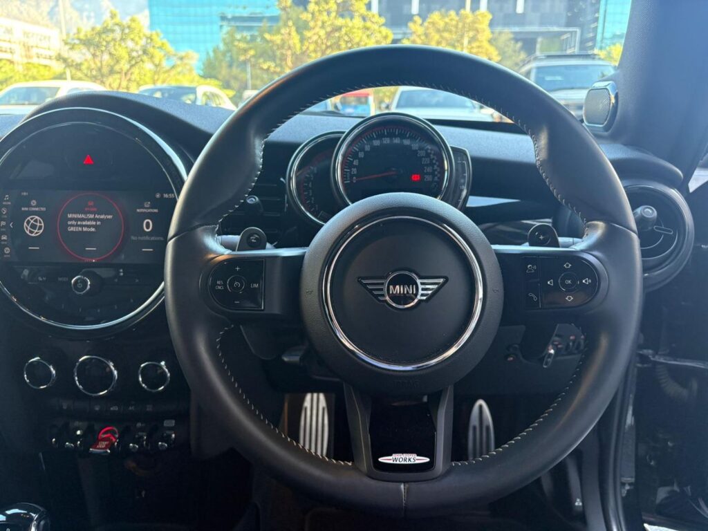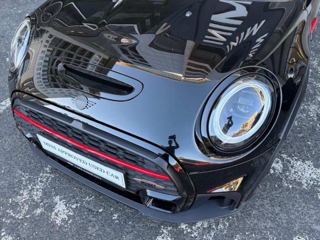 JCW 3DR Multifunction for steering wheel Nappa leather steering wheel Automatic anti-dazzle interior mirror Storage compartment package MINI Driving Modes MINI Yours Leather Lounge Carbon Black 18" JCW Course Spoke 2-tone / runflat tyres Adaptive Suspension Runflat tyres Comfort Access Rear view camera Panorama glass sliding/tilting sun roof, electrically operated Sport seats for driver and front passenger Ambient interior lighting Extended Light Package Hi-fi Loudspeaker System Harman/kardon Intelligent emergency calling Real Time Traffic Information Smartphone Integration MINI navigation system TRADE INS WELCOME IN HOUSE FINANCE AVAILABLE On the road and Licensing fees not included