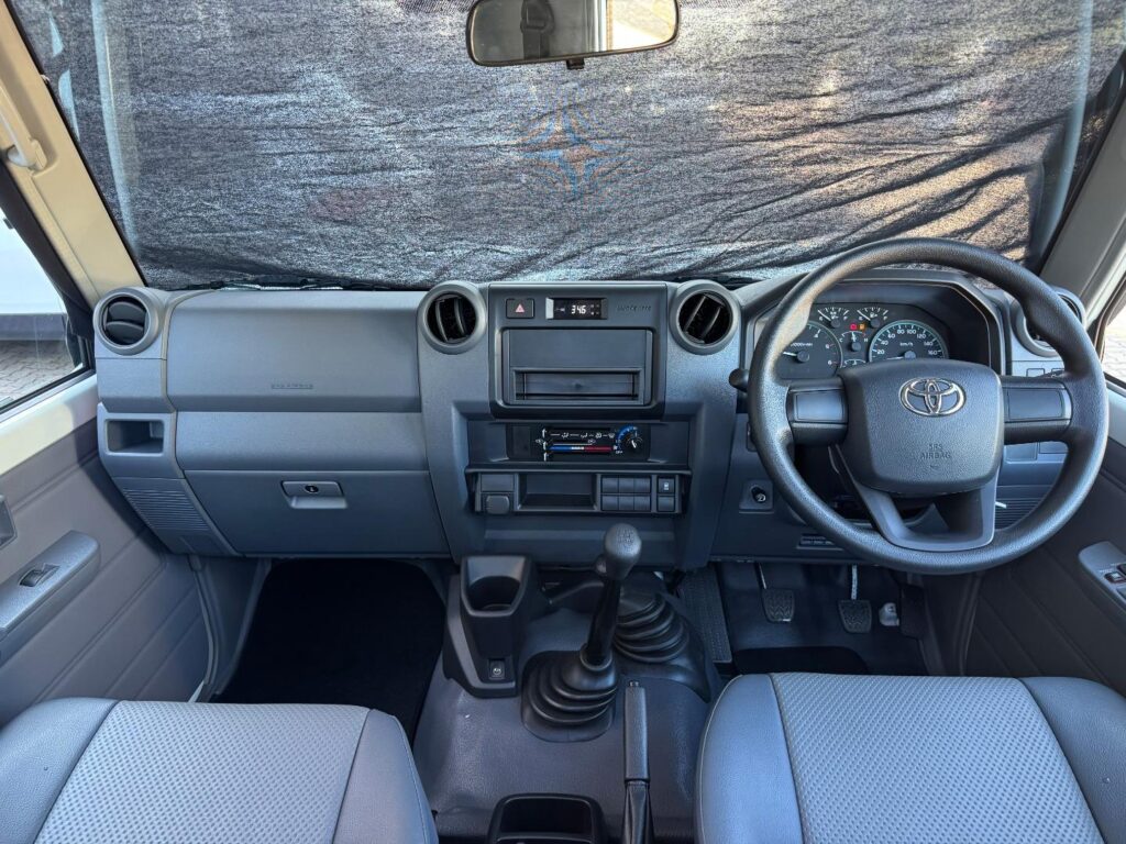 This 2026 Toyota Land Cruiser 79 4.2D Single Cab is built for serious work and long-distance reliability. Powered by Toyota’s proven 4.2 litre i6 diesel, it delivers 96 kW and 285 Nm with a massive 180 litre fuel capacity and an impressive average range of up to 1 475 km. The robust drivetrain, simple mechanicals and new-vehicle warranty give strong peace of mind for fleet use, farming, mining or overlanding, with parts and service support easy to access across South Africa. Inside the white single cab you get a hard-wearing, functional cabin designed to handle tough conditions while keeping you comfortable. Supportive seats, practical storage, durable materials and straightforward controls make long days behind the wheel easier, while the high driving position and classic Land Cruiser visibility inspire confidence on gravel or tar. If you need a low-fuss, high-durability workhorse that is ready to go straight to site, this Land Cruiser 79 is an excellent buy. Enquire now to secure yours.