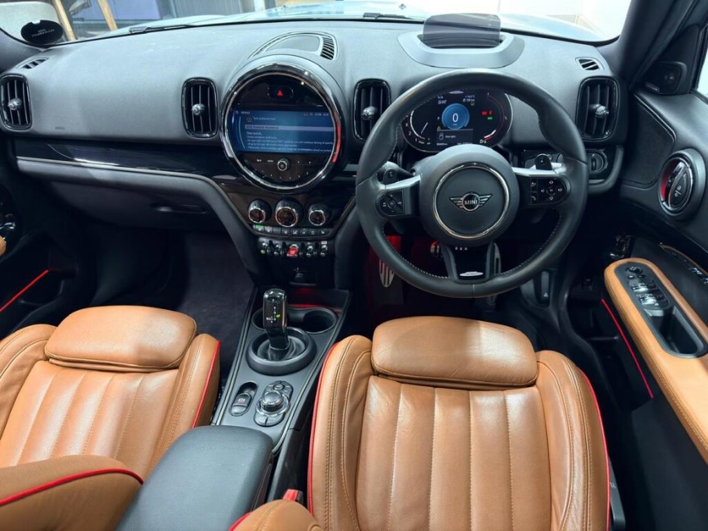 🔥 2024 MINI Cooper Countryman JCW – Sage Green | Fully Loaded | Head-Turner 🔥 Stand out from the crowd with this striking 2024 MINI Cooper Countryman John Cooper Works, finished in exclusive Sage Green Metallic with bold red roof, mirror caps, and JCW sport stripes. This isn’t just a car — it’s a statement of performance, style, and premium craftsmanship. Under the hood, the JCW performance DNA delivers exhilarating power, while the refined interior wraps you in MINI Yours Leather Lounge Carbon Black with heated sport seats for ultimate comfort. Key Features Include: • 19” JCW Circuit Spoke alloys with runflat tyres • Panoramic glass sunroof (electrically operated) • Harman/Kardon Hi-Fi sound system • MINI Head-Up Display • Navigation system with Connected Navigation Plus & Real-Time Traffic Info • Smartphone integration & wireless charging • Park Assist + Rear View Camera • Automatic tailgate operation • Comfort telephony & MINI Connected XL • Multifunction digital instrument display Enjoy added privacy with sun protection glazing and sleek styling accents like Piano Black exterior trim and Jet Black roof rails. This vehicle is fully optioned, combining cutting-edge tech, everyday practicality, and signature MINI driving excitement.