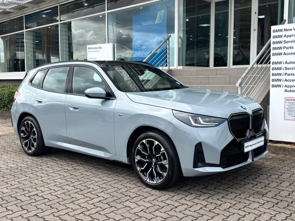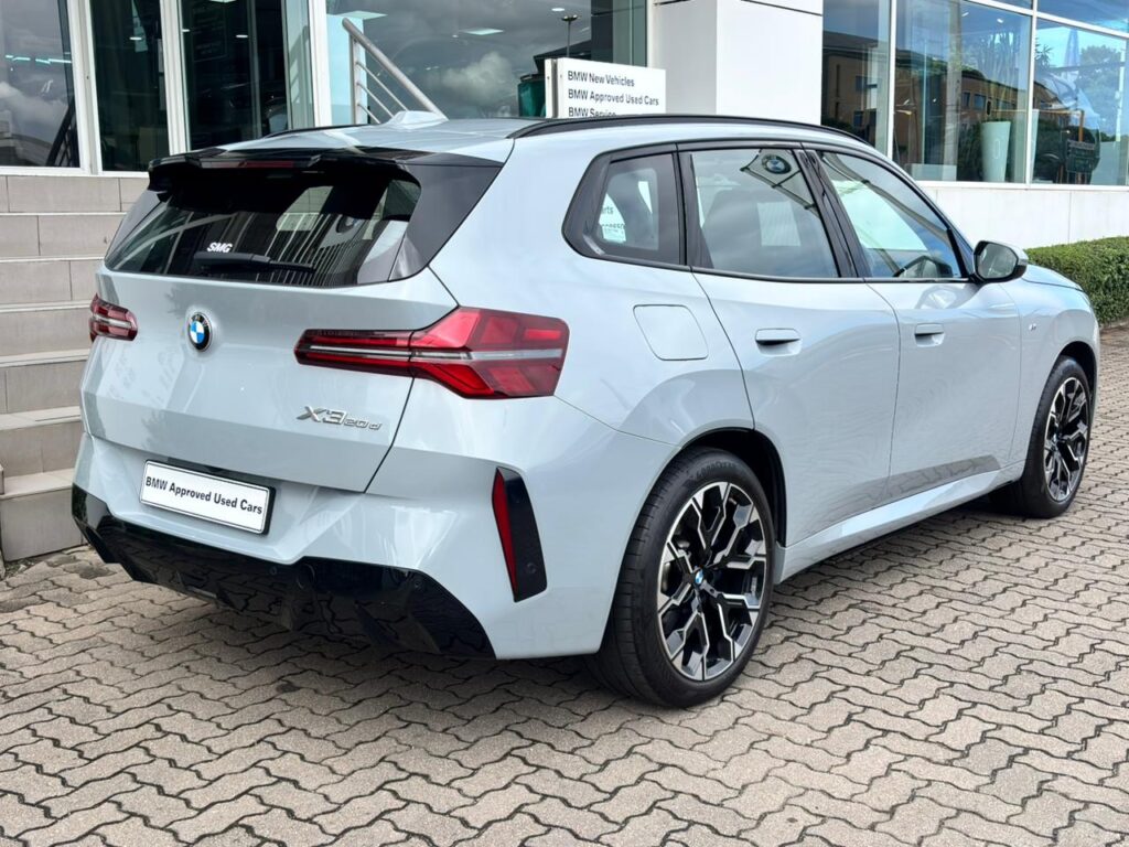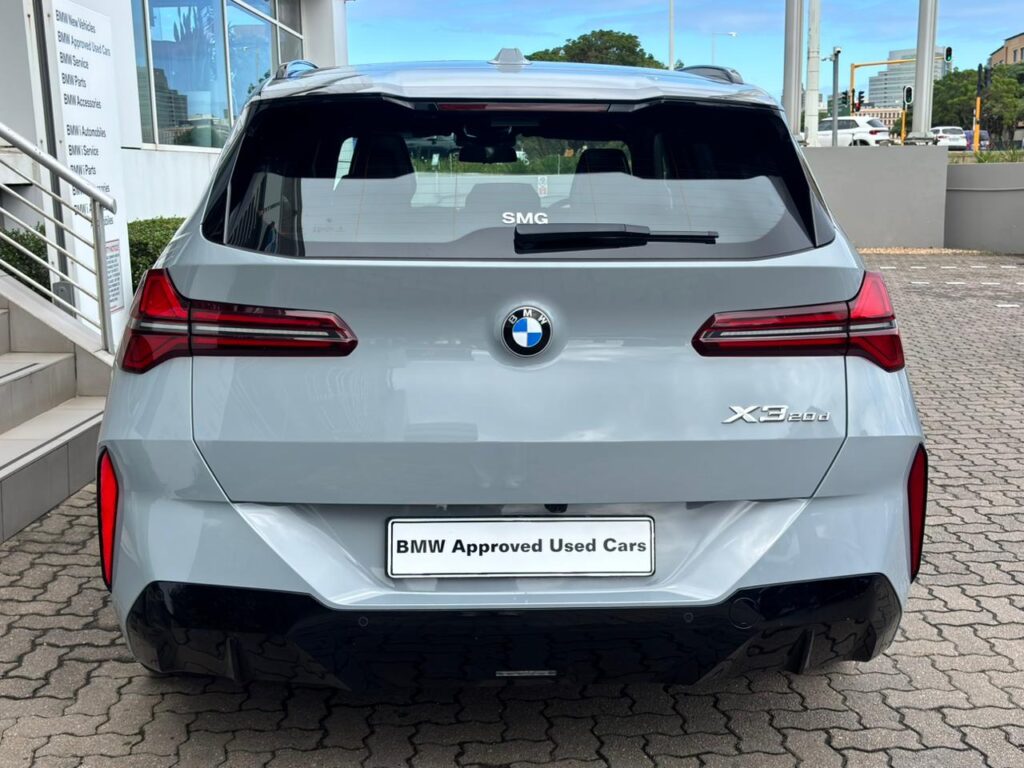 v-46418 -This 2025 BMW X3 20d xDrive M Sport in Brooklyn Grey blends premium comfort with efficient performance. The 2.0 turbo diesel delivers 145 kW and 400 Nm through BMW’s xDrive all wheel drive, giving confident overtaking, a 0 to 100 km/h time of 7.7 s and average consumption of just 6.2 l/100 km. With a fuel range of up to 968 km and a 60 litre tank, it is ideal for long distance commuting and family trips. Inside, the M Sport trim offers a luxury feel with supportive sports seats, high quality finishes and advanced infotainment. The panoramic roof floods the cabin with light, enhancing comfort for all passengers. This X3 comes with a full franchise service history plus a balance of warranty up to 100 000 km for extra peace of mind. A sought after spec, low running costs and strong resale value make this an excellent buy; secure it now before it is gone.